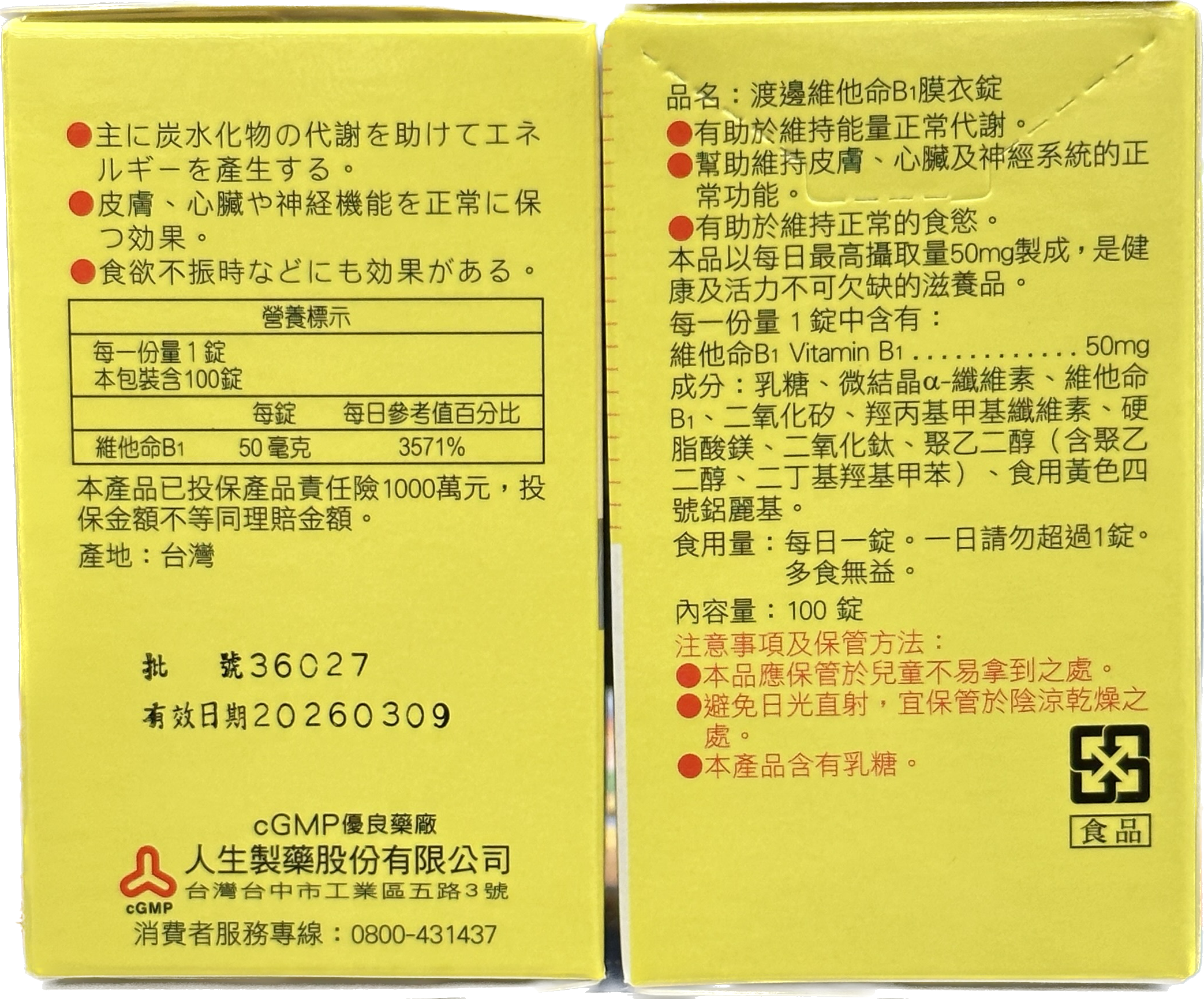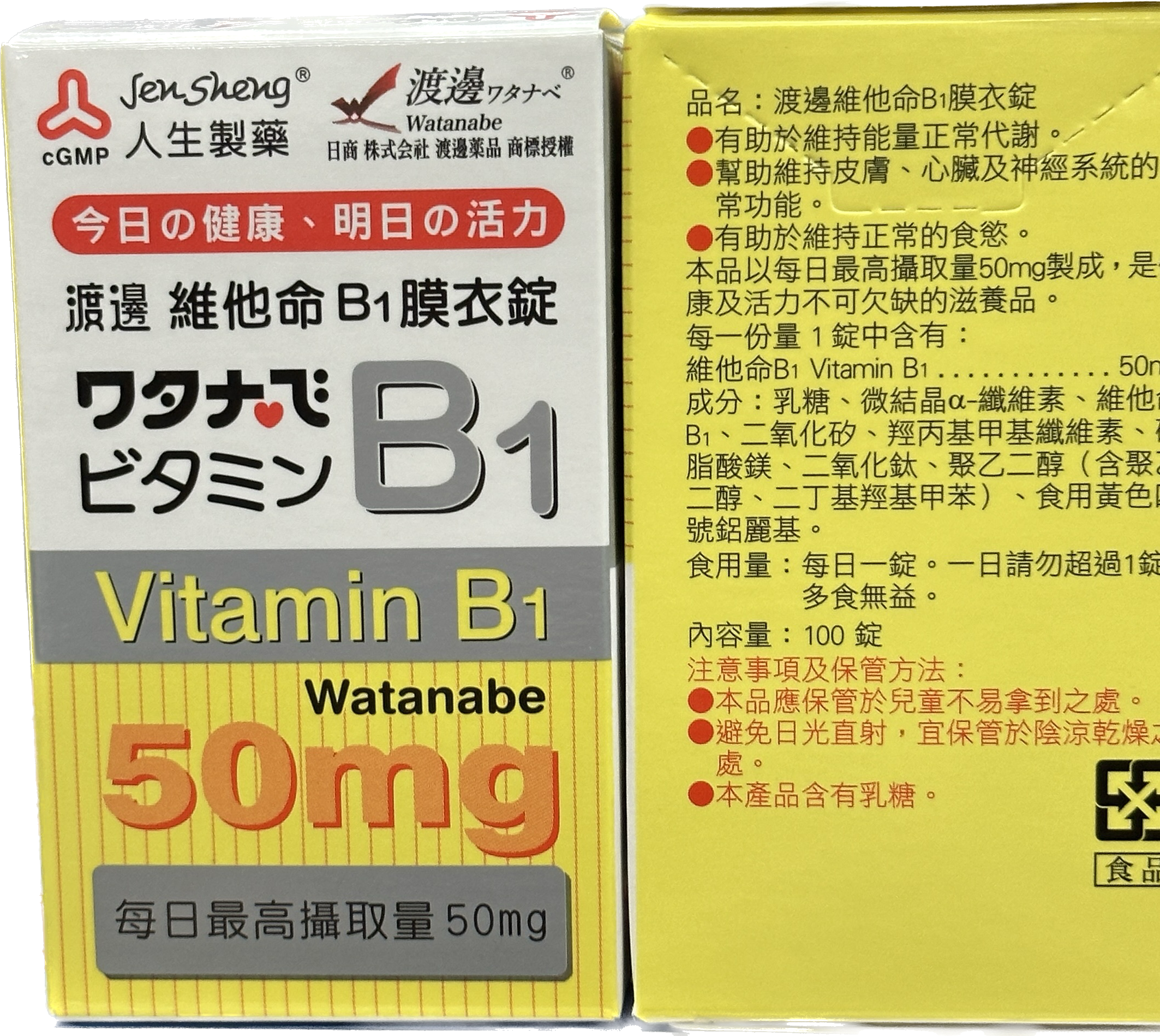 【買3送1,數量下4】人生 – 渡邊維他命B1膜衣錠【50mg】(100錠/瓶)