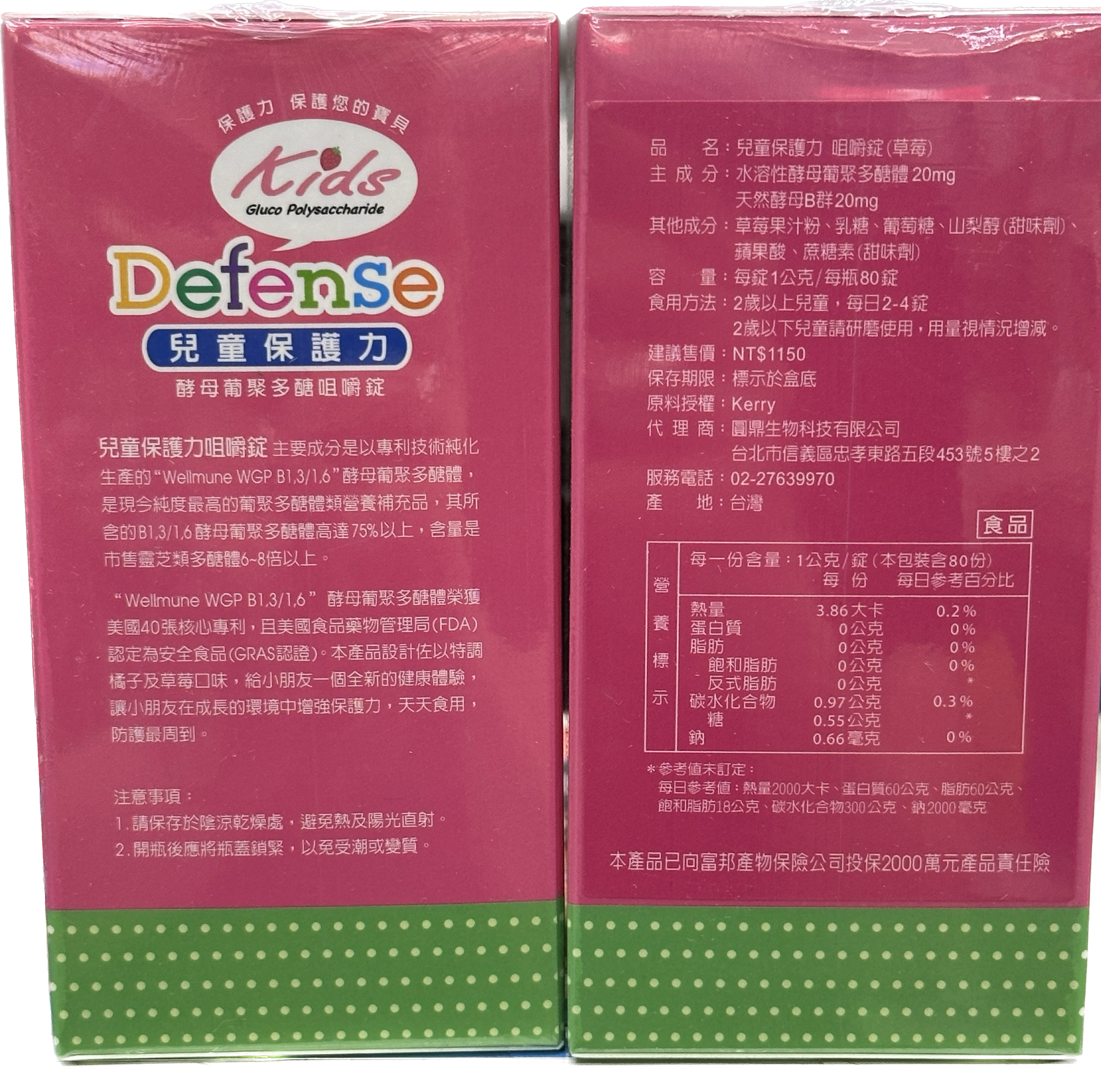 兒童保護力 咀嚼錠主要成分是以專利技術純化生產的”Wellmune WGP B1,3/1,6酵母葡聚多醣體,是現今純度最高的葡聚多醣體類營養補充品,其所含的B1,3/1,6酵母葡聚多醣體高達75%以上,含量是市售靈芝類多醣體6~8倍以上,Wellmune WGP B1,3/1,6酵母葡聚多醣體榮獲美國40張核心專利,且為美國食品藥物管理局(FDA)認定為安全食品(GRAS認證)。產品設計佐以特調橘子及草莓口味給小朋友一個全新的健康體驗,讓小朋友在成長的環境中增強保護力,天天食用防護最周到。